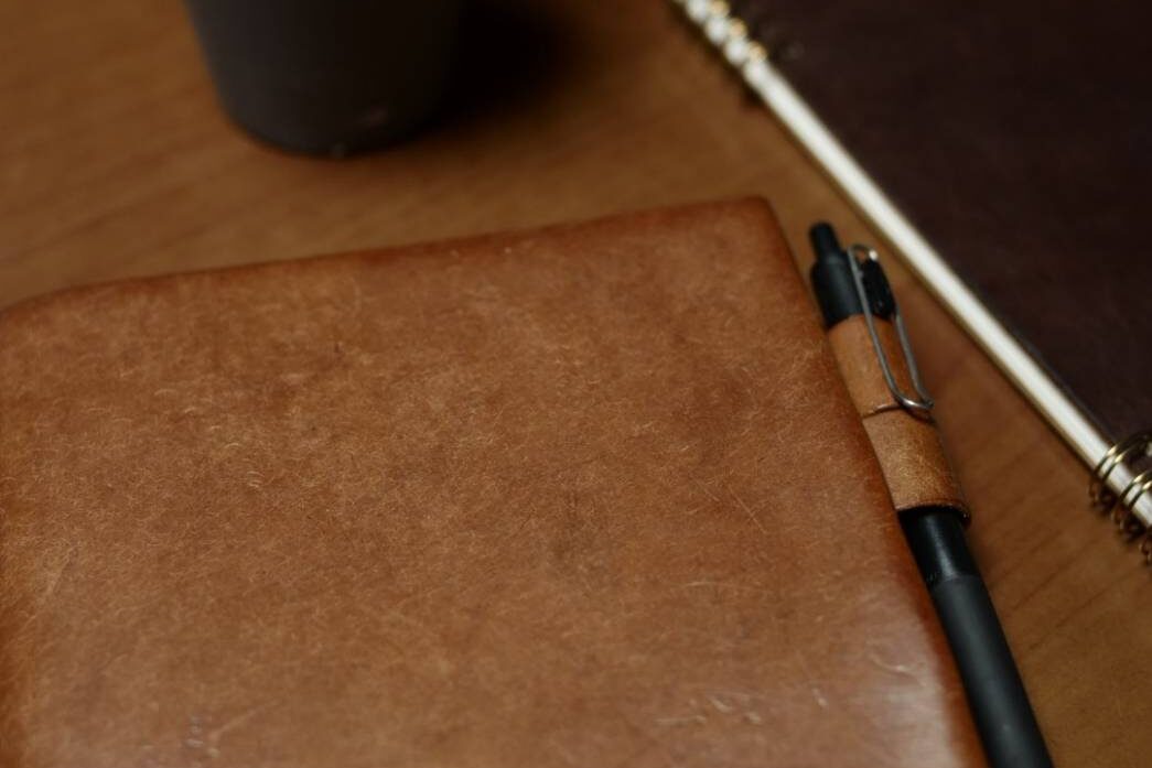 友達が作ってくれた革の手帳カバーも、素材からデザイン、細部まで全てお気に入りです。