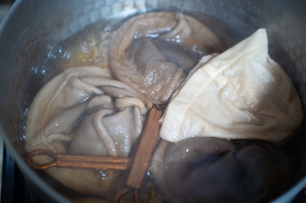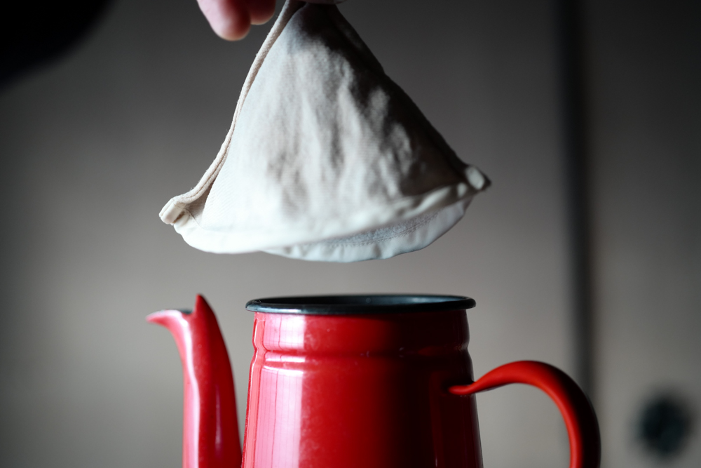 新しいネルを下ろす時だけ、10分ほどコーヒーの粉(使い終わったものでOK)と一緒にグツグツ煮てあげてください。