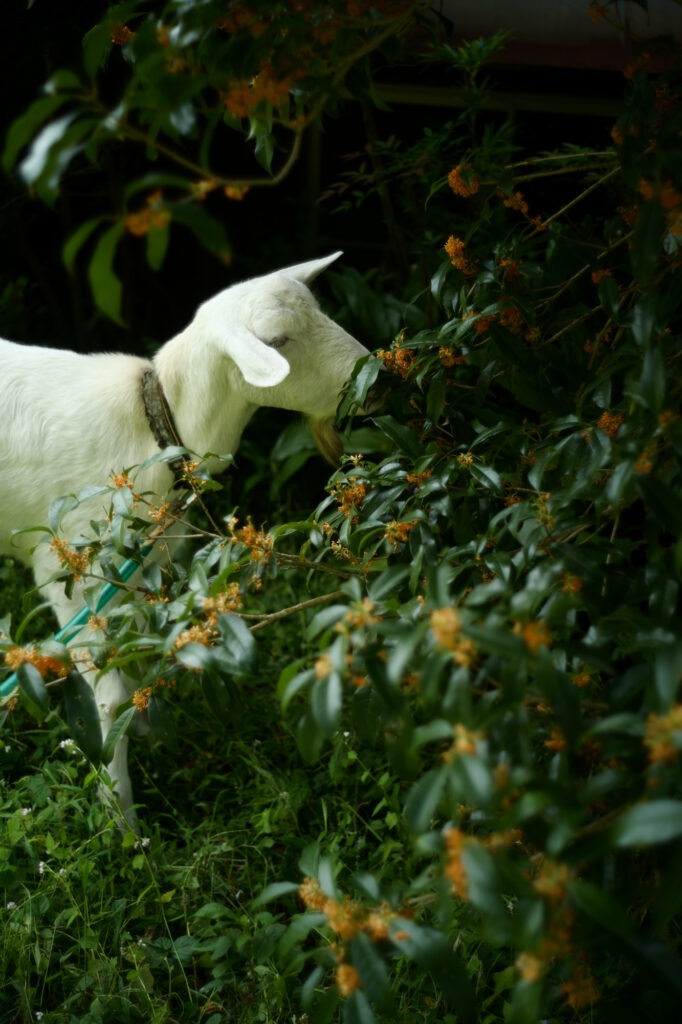 ヤギとコーヒー 佐礼谷焙煎所の庭のキンモクセイはまさに満開。